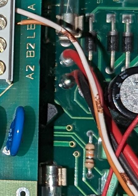 Ja, Sabo konnte ich problemlos zurücksetzen (mehrmals sehr lange Off drücken). Auf der platine sind nirgendwo irgendwelche beschriftungen, das macht es schwer einen T7008 zu finden. Im anhang ist ein bild der ganzen platine. Da ist links ein großer schwarzer reset schalter, ist der das? Ich drücke nur sehr ungern irgendwelche reset buttons wenn ich nicht weiß was die machen... Eine Störungs-LED finde ich nicht auf der Platine.... Unterhalb der Anlage ist noch eine "Auswerteeinheit IK-2", mit zwei LEDs: "Betrieb" und "Störung". Hier leuchtet nur die "Betrieb" LED fröhlich grün. Das Gehäuse habe ich noch nicht aufgemacht. (21-12-2023 00:07)AaronK schrieb: Was genau geht eigentlich mit dem weißen Kabel? Warum ist das aus kurzen Stücken zusammengebastelt durch verdrillen und warum hatte der Verantwortliche dieser Idee nicht mal Schrumpfschlauch zur Hand? Siehe vergrößerter Auschnitt im Anhang. Das ist das telefonkabel, und nein, das ist ist nicht aus kurzen Stücken zusammengebastelt... Sieht aber auf dem komprimierten Foto wirklich so aus. |
