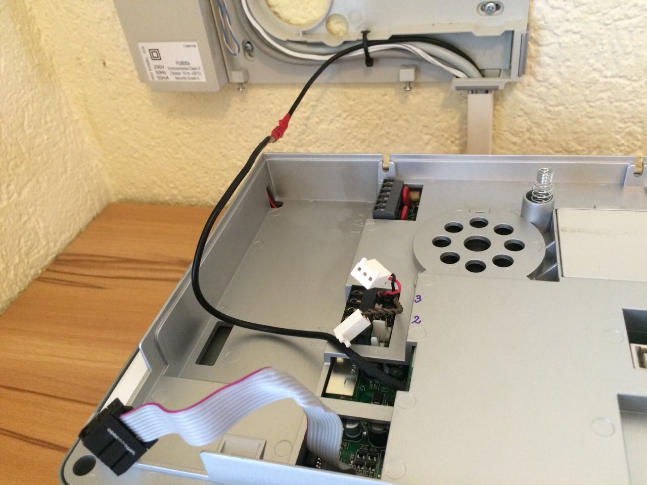 dies er leider nicht. Der Stecker ist aud deinem Bild hinter dem Gsm-Modul, da wo auch das braune Lautsprecherkabel angesteckt ist. Hast du davon vielleicht auch ein Bild. Danke |
