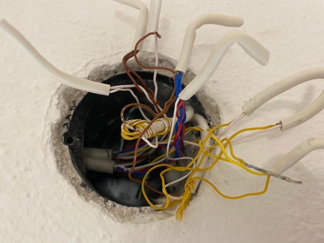 ich versuche meine Verkabelung zu verstehen, da wir 4 neue Fenster bekommen und ich die Magnetkontakte und Glasbruchmelder erneuern muss. Danke für die Unterstützung :-) Ich habe folgendes herausgefunden: 2 Kabel mit je 8 Drähte, davon einer blank. Dieser immer verdrillt mit anderem blanken kleines Fenster OG: Magnetkontakt 4 weiße Kabel, davon zwei geknotet und unbenutzt. Eine weiße Ader Magnet an weiße Ader Wandkabel und andere weiße Ader an grüne Ader aus Wand. Wenn Fenster zu piept der Durchgangsprüfer. Glasbruchmelder: 4 gelbe, eine weiße und eine braune Ader. 2 gelb zusammengeknotet (Sabotage?) piepen sind an zwei gelbe aus Wand angeschlossen. Weißer Glasbruch an zwei rote Kabel aus Wand und brauner aus Glasbruch an 2 blaue in Wand. KG: Magnetkontakt 4 gelbe unbenutzt, braun Kontakt an weiße Ader aus Wand, weiß Kontakt an weiß aus Wand. Piepen zusammen, wenn Fenster zu. Braun Wand an braun Wand Glasbruchmelder: weiß Glasbruch an zwei rote Adern aus Wand, braun Glasbruch an zwei blaue aus Wand. Zwei gelb geknotete an je 1gelb aus Wand, also je weiß an gelb. Geknotete gelb piepen. Enddose im EG: Glasbruch braun an blau und Glasbruch weiß an rot. Gelb geknotet mit gelb normal über Widerstand. Gelb Glasbruch an weiß und gelb Glasbruch an weiß Wand. Magnetkontakt: 4 Kabel weiß, davon 2 unbenutzt. Ader Weiß Magnetkontakt an weiß Wand und weiß Magnetkontakt mit Widerstand an braun Wand. Kann mir jemand dazu etwas erklären, außer dass es eine Z-Verkabelung ist. Das wäre sehr nett von euch. |