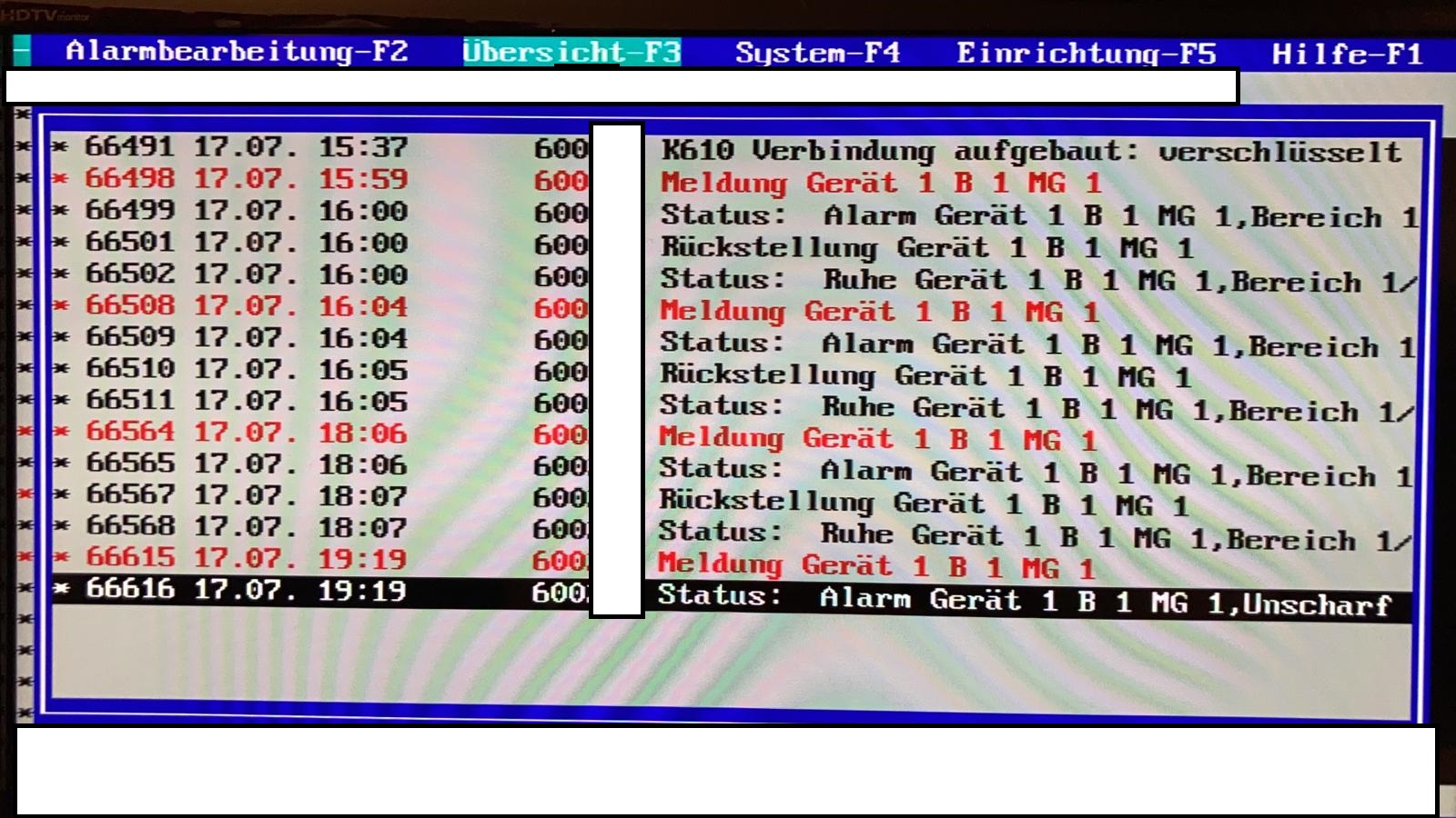 Wir setzen seit einigen Jahren die Honeywell MB48 mit dem DS9500 Wählgerät ein. Da bei uns in den nächsten Wochen ISDN abgeschaltet wird, habe ich mir das DS6750 gekauft und in die Anlage eingebaut. Der Wachschutz hat die "Stehende Verbindung" favorisiert. In meinen Augen ist das auch erstmal die beste Wahl. Darum habe ich die Verbindung nach deren Vorgaben (Schlüssel, ID, ...) eingerichtet. Die Verbindung kommt auch Zustande und wird beim Wachschutz als Verbindung aufgebaut angezeigt. Leider wertet das System vom Wachschutz jetzt die Scharf / Unscharfschaltung als Alarm aus. Siehe Foto. Im Reiter Signaltypen von dem entsprechenden Ausgang habe ich meiner Meinung nach die korrekte Auswahl getroffen. Siehe Screenshots. Welche Meldung ist denn für die stehende Verbindung relevant? Telim und Contact ID sind es doch nicht. Also kann es doch nur "Nicht Soll Zustand VdS2465" sein. Oder werden generell alle Ereignisse direkt übermittelt? Oder hab ich was übersehen? Ich habe mir paralell den E-Mail versand eingerichtet (total aufwändig über lokales smtp Gateway, da Honeywell ja kein ssl unterstützt). Dort kommen die Nachrichten jedenfalls korrekt an. Kann mir jemand einen Tip geben? Ich vermute mal die Software vom Wachschutz ist falsch programmiert, oder habe ich bei mir irgendeine Einstellmöglichkeit übersehen? Folgende Software wird verwendet: WinFEM: 16.5.0.0 DS6750: 9.06 MB48: 15.04 ====> Falls jemand aktuellere Software für die Module zur Verfügung stellen kann, würde ich nicht nein sagen ;-) Vielen Dank vorab und schönes Wochenende. Freundliche Grüße Daniel [attachment=4258] |
