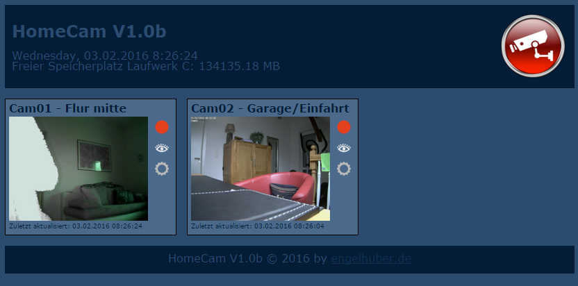Da sich auch bei uns in der dunklen Jahreszeit wieder die Einbrüche gehäuft haben, habe ich mir nun endlich mal die Zeit genommen meine Kameras - die schon länger hier rum liegen - richtig in Betrieb zu nehmen und eine kleine Webapplikation dafür zu schreiben.Als Server für die Aufzeichnung sollte ursprünglich ein Raspberry Pi dienen, aber irgendwie wurde der nun doch zweckentfremdet Nun ist daraus ein kleiner Mini ITX Rechner mit Windows 7 geworden.Im Hintergrund läuft ein XAMPP Server mit Apache und FTP. Die Kameras schaufeln jede Minute ein Bild per FTP auf den Server. Zudem natürlich bei erkannter Bewegung. Zum Einsatz kommen derzeit eine Wansview WLAN Kamera - die nur im Haus verwendet wird - und eine Foscam WLAN Kamera die ich noch im Garagenbereich installieren will. Für den Eingangsbereich muss ich mir noch eine anschaffen... Damit man das ganze Geschehen auch schön anschauen kann (PC, Smartphone, Tablet, ...) habe ich mir dazu eine kleine Webapplikation geschrieben. Die Startseite zeigt das minütliche Bild aller Kameras und kann per Klick vergrößert werden. Über die kleinen Buttons neben dem Bild können die Alarm-Aufzeichnungen aufgerufen werden die nach Tagen sortiert sind. Zudem kann ein Livebild und die Administrationsoberfläche der Kameras aufgerufen werden. Anbei ein paar Screenshots. Was noch fehlt ist das automatische Löschen alter Bilder bzw. wenn die Platte voll läuft. Daran arbeite ich derzeit noch. Gibt es so eine Software eigentlich fertig zu kaufen bzw. als OpenSource Projekt? Gruß Hubi |