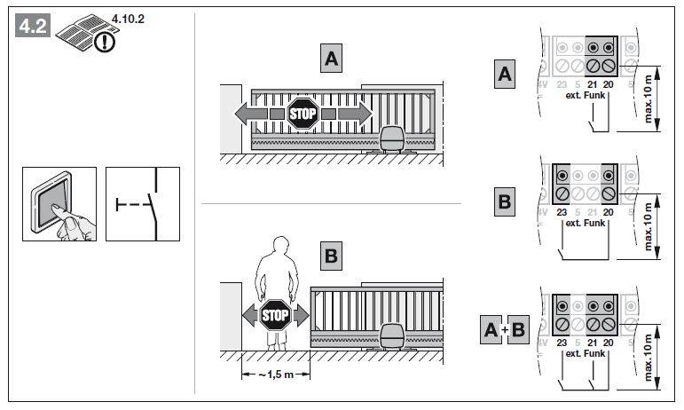 ich habe einen Hörmann LineaMatic Torantrieb und würde diesen gerne mittels der Bedienteile im Haus steuern. Jetzt überlege ich mir meine Anlage um ein UC-82 Modul zu erweitern und den Garagentorantrieb (Teilöffnung/Vollöffnung) auf PGX *8 und PGY *9 aufzulegen. Ich würde daher PGX auf die Klemmen 20/21 für die Teilöffnung und PGY auf die Klemmen 20/23 für die Vollöffnung hängen (siehe Skizze). Folgendes sagt Hörmann dazu: 4.10.2 Anschluss externer Taster (siehe Bild 4.2) Ein oder mehrere Taster mit Schließerkontakten (potentialfrei), z.B. Schlüsseltaster, können parallel angeschlossen werden, max. Leitungslänge 10 m. Impulssteuerung: Erster Kontakt an Klemme 21 Zweiter Kontakt an Klemme 20 Teilöffnung: Erster Kontakt an Klemme 23 Zweiter Kontakt an Klemme 20 Hinweis: Wird für einen externen Taster eine Hilfsspannung benötigt, so steht dafür an der Klemme 5 eine Spannung von +24 V DC (gegen die Klemme 20 = 0 V) bereit. Liege ich mit meiner Annahme richtig das es so fuktionieren würde? Die PGX und PGY Ausgänge würde ich dann auf einen 2Sec Impuls setzten wie wenn ich einen Stinknormalen Taster drücken würde. Grüße Quixtos |