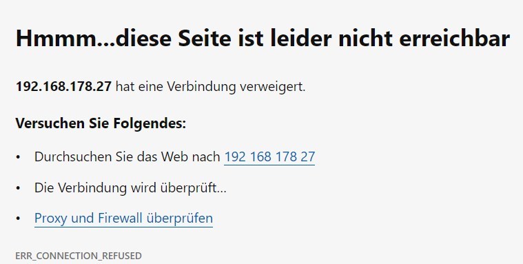 Ping-Anforderung konnte Host "192.168.178.27:88" nicht finden. Überprüfen Sie den Namen, und versuchen Sie es erneut.