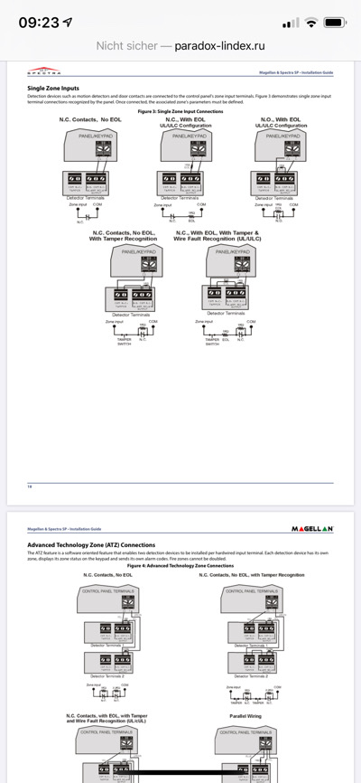 Die Widerstandswerte weichen bei der MG5075 ab. Dies ist nur die grundlegende Schaltung. EOL heist nichts anderes als "End Of Line" und bedeutet, das die Linie mit einem entsprechenden Widerstand abgeschlossen ist. Schau in deine Installationsanleitung, diese liegt der Zentrale bei. Dort steht es jedenfalls genau beschrieben. Wenn du den Schaltplan nicht lesen kannst, hol dir jemand der sich damit auskennt. Es bringt auf jeden Fall nichts, wenn du bei jeder Schraube nachfragen musst in welche Richtung du die festdrehen musst. Die Paradox Anlagen sind kein DIY. Das wirst du spätestens bei der Programmierung merken. Gewisse Grundkenntnisse werden da vorausgesetzt. Viele Fehler sind RTFM Fehler - Read The Fucking Manual Telenot, Daitem, UTC, Hikvision AxPro, Lupus, AVS www.peteralarm.de |