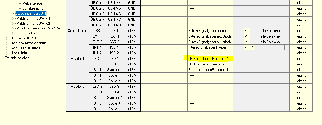Fast noch ausführlicher ist es in der Beschreibung des Comlock 410 zu sehen. Diese kannst du dir als Errichter bei Telenot herunterladen, falls nicht mehr vorhanden. Das unter 2.3.2 nur drei Striche zu sehen sind, ist normal wenn ein Leser ohne Tastatur ausgewählt wurde, da dies nur die Beleuchtung des Tastenfeldes betrifft und ein Leser ohne Tastenfeld hat nun mal keine Beleuchtung. Wo ist der Leser angeschlossen? Direkt an der Zentrale? oder an einem Comlock 410? Wenn der richtige Leser ausgewählt ist, findest du unter den Ausgängen LED1, hier muss LED grün Leser eingetragen sein (steht eigentlich automatisch so drin. Das hatte 5624 aber bereits geschrieben. Viele Fehler sind RTFM Fehler - Read The Fucking Manual Telenot, Daitem, UTC, Hikvision AxPro, Lupus, AVS www.peteralarm.de |