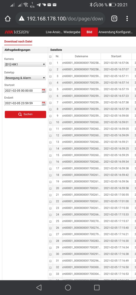 Der Zeitplan ist aktiviert (siehe Bild Zeitplan), bei Verküpfungsmethode ist u. a. eMail und Überwachungscentrum eingestellt (siehe Bild Verküpfungsmethode). Der eMail-Versand funktioniert einwandfrei, wenn nur Alarmeingang oder nur Bewegung eingerichtet ist. Im Reiter Kombinierter Alarm ist die Kamera ausgewählt und u. a. Bewegung markiert (siehe Bild Kombi-Alarm). Trotzdem wird keine eMail versendet und auch HIKconnect wird nicht informiert, so daß über die Apps HIK-Connect bzw. iVMS-4500 keine Meldungen empfangen werden. Kann mir jemand sagen, was ich falsch gemacht habe? |