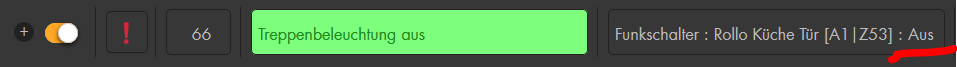 würde gerne als Bedingung ein Rollo nutzen, sprich ob es auf oder zu ist und daraus dann etwas auslösen. Man kann bei Funkschalter auch das Rollo auswählen, aber hat dort nur die Option "an" oder "aus". ist dies mit "auf" und "zu" gleichzusetzen? Hat da bereits jemand Erfahrungen? Danke und Grüße XT2 Plus 1x Außen-, 1x Innensirene, 1x Hutschienenaktor, 1x Keypad V2, 3x BWM V2, 15x Türkontakt V2, 1x Lupus Funksteckd., 9x Rauchmelder V2, 12x Rolladenrelais V2, 13x Heizkörperthermostat V2, 2x Temp.sensor, 9x Shelly, 2x Statusleuchte mit ESP32, 6x Zigbee Steckd. | IO-Broker |