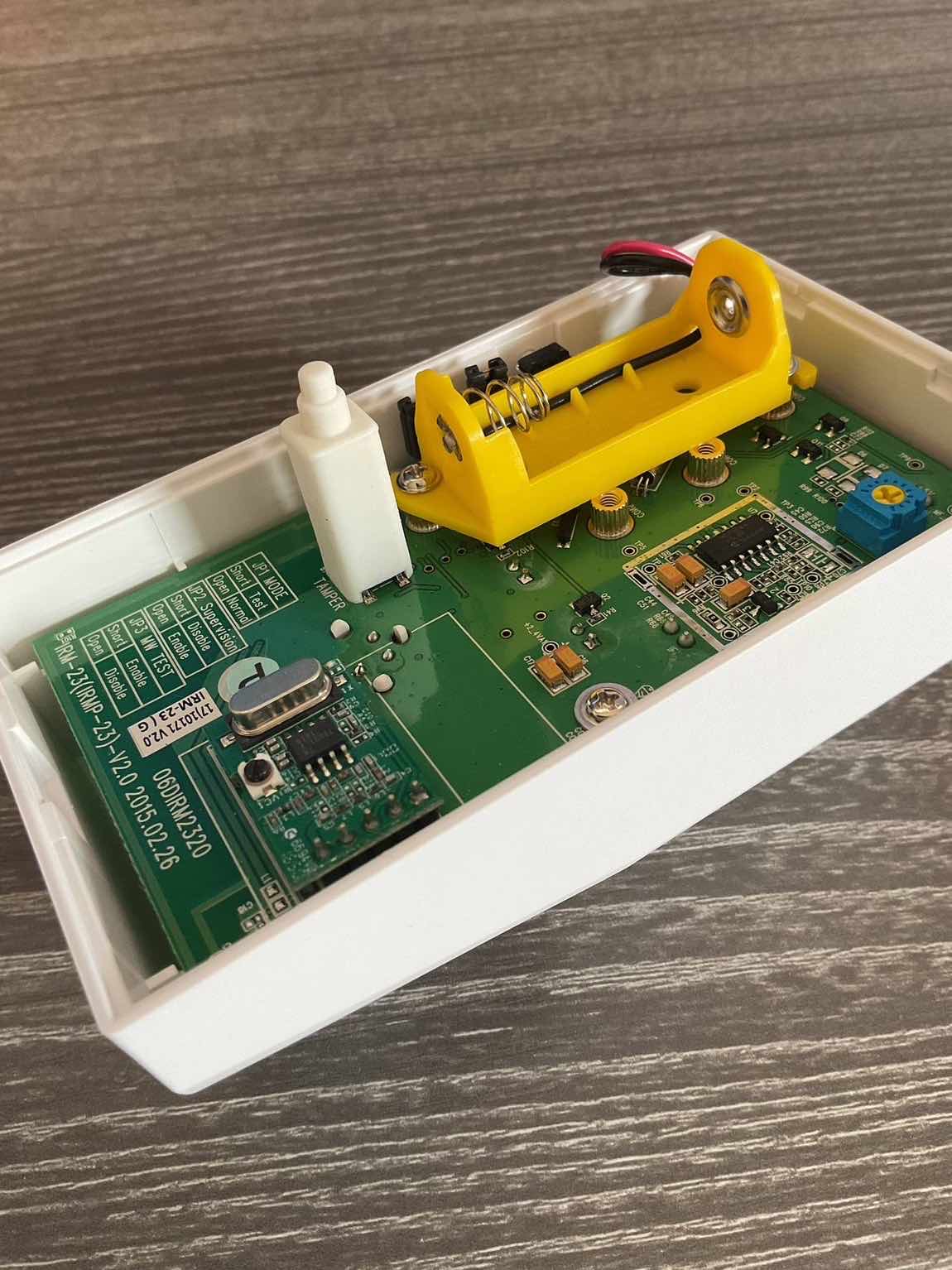 , sondern um das Vorderteil, was mit vier Lyzen aufgesteckt wird (es ist, wie ich bereits geschrieben habe nicht der Standard welcher verschraubt, sondern der Dual-Way Melder welcher einrastet). Durch den Sabotagestift, der auf das Rückteil permanent Druck ausübt, haben sich die Lyzen gelockert, so dass ein Spiel von 3mm entstand, was wiederum den Sabotagealarm ausgelöst hat.