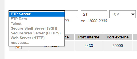 >> wieso eigentlich FTP Server und nicht "andere Anwendung"? bei der Freigabe??? Der FTP Server ist standardmässig ausgewählt. Du siehst hinter der Bezeichnung "FTP Server" eine kleines schwarzes Dreieck. Über ein Dropdown-Menü kann man andere Server aussuchen. Beim Anlegen der Ports habe ich aber "andere Anwendungen" (nouveau) ausgewählt. Siehe Screenshot |