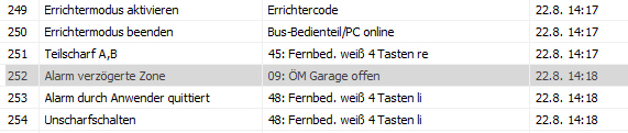 habe ich umgestellt. Leider kein anderes Ergebnis. Was mich wundert ist, dass in der Ereignisanzeige steht "Alarm verzögerte Zone" zu ÖM aus Zone A, den ich als zweites (nach der Eingangstür) während der Eingangsverzögerung aktiviert habe. Wieso verzögerte Zone? Noch kurz zum Verständnis: Wenn ich "Einzelalarmanzeige" aktiviere, wird dann für jeden ausgelösten Melder eine SMS geschickt bzw. ein Anruf durchgeführt? Gruß Sebastian (22-08-2013 14:29)Sebbl schrieb: Noch kurz zum Verständnis: Wenn ich "Einzelalarmanzeige" aktiviere, wird dann für jeden ausgelösten Melder eine SMS geschickt bzw. ein Anruf durchgeführt? Hallo nochmal, bitte entschuldige, war grad komplett auf dem Schlauch gestanden. Die Einzelalarmanzeige soll natürlich die Anzahl der Anrufe verringern, weswegen ich sie aktiviert lasse... Grüße Sebastian |