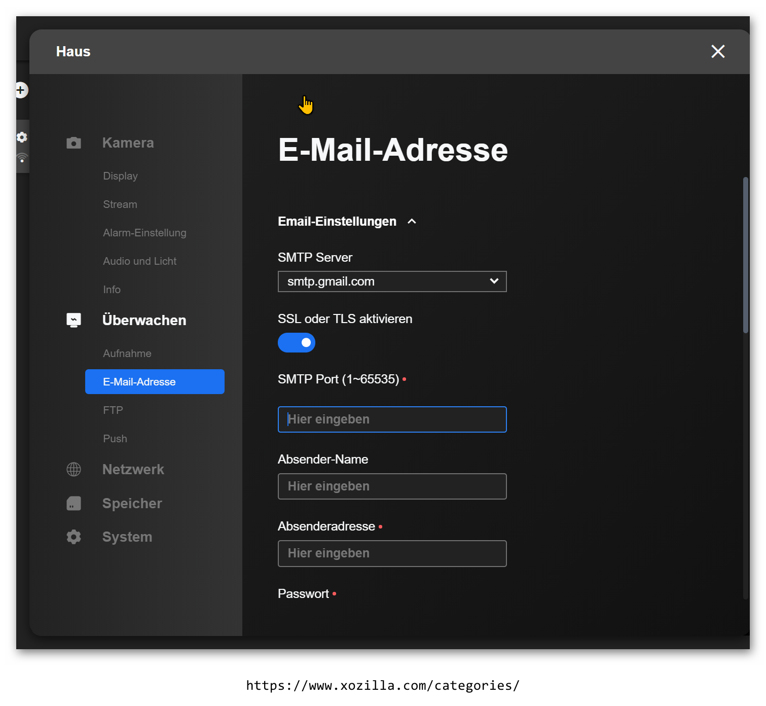 Einrichten der E-Mail -Adresse von Reolink RLC-410