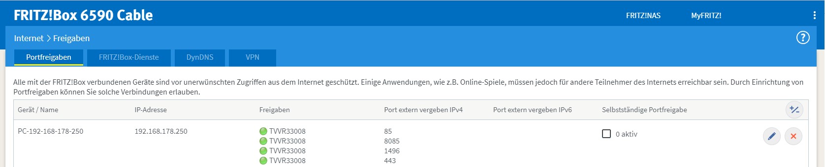 da gibt es soviel Fallstricke, dir fehlen rudimentäre Dinge, um sowas dauerhaft ans Laufen zu bringen. Ich persönlich arbeite nicht mit myfritz, ich nutze dyn von oracle. Mit myfritz habe ich auch negative Erfahrungen, wobei die neue Firmware ja VPN via Wireguard unterstützt, vielleicht ist das die wesentlich bessere Alternative, da brauchts dann auch keine Portöffnungen mehr. Welche fritzbox wird genutzt? Wahre Männer lesen keine Bedienungsanleitung! Erfahrung ist eine nützliche Sache. Leider macht man sie immer erst kurz nachdem man sie brauchte. (Goethe) |