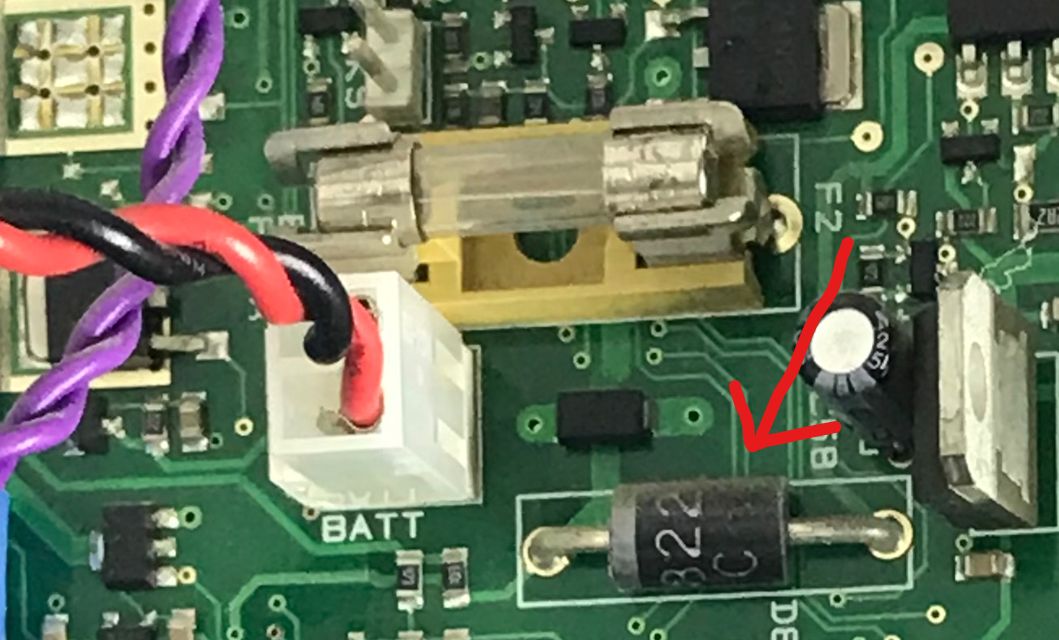 Übrigens, dein Pfeil zeigt auf die falsche Diode. Die SMD Diode in der Ecke zwischen Akkustecker und Sicherung müsste es sein.