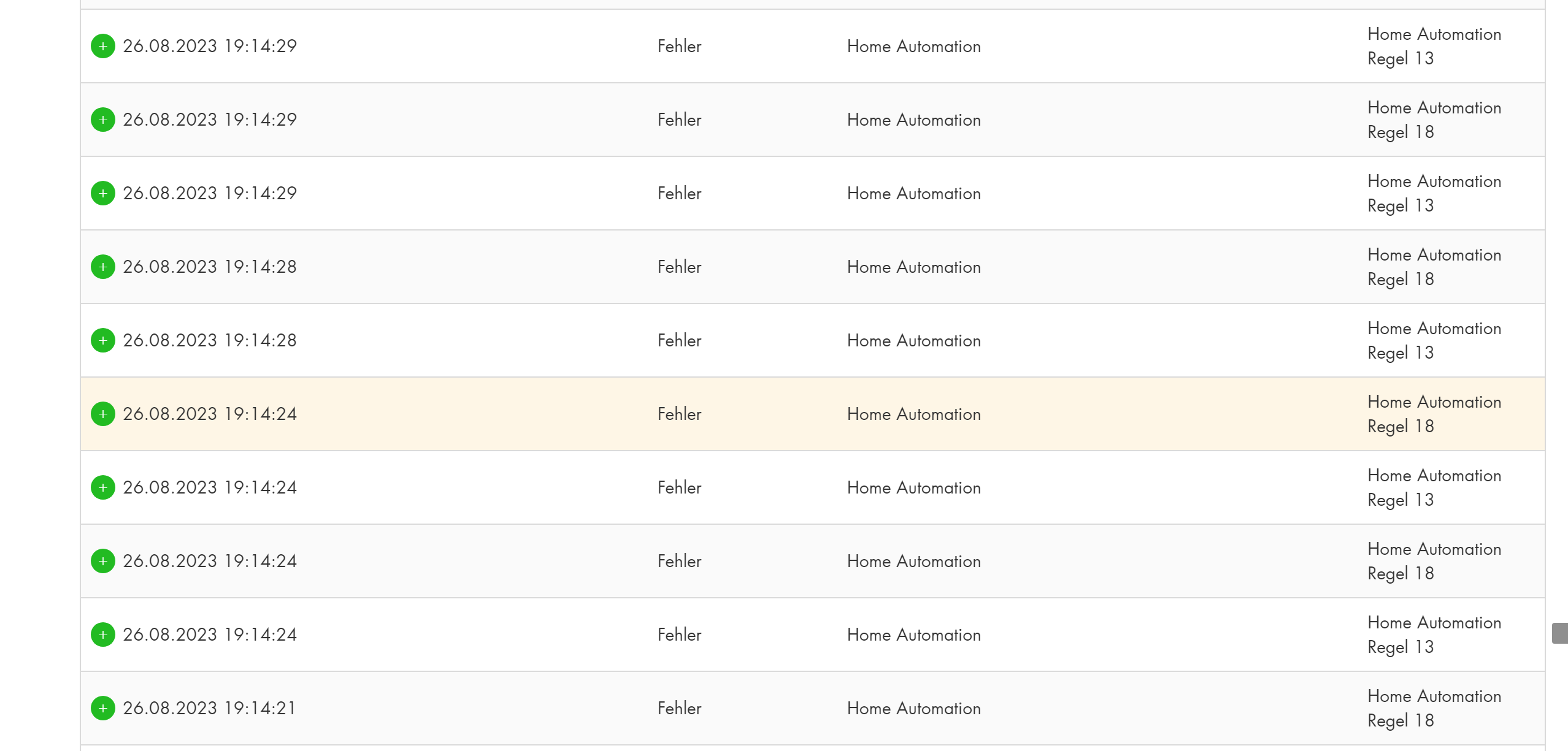 Okay, denke wir kommen der Sache näher. Ich kann leider keinen Screenshot von VOR dem Ereignis machen, weil das Log geflutet ist mit Fehlermeldungen, weil quasi im Sekundentakt 2 Smart-Home-Regeln fehlschlagen. Das schaut über die max. 500 einsehbaren Meldungen so aus: