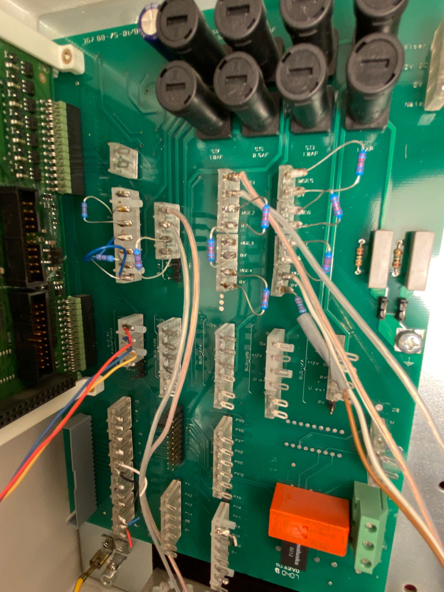 Joa, so nimmt man eine MB in Betrieb: analogeingänge mit 12 k abschließen,sirenen mit 12 k abschließen blitzlicht mit 750 ohm abschließen, Sirenen und Blitzlicht können auch durch abziehen der beiden linken Jumper vorübergehend ausgeblendet werden. Bedienteil mit Adresse 1 an Strang Bus 2 A oder B anschließen,Verbindung USB/seriell anschließen, DIP3 auf off,(Baudrate 38,4k),BDT Simulation am PC starten ,Standardprogramierung Funktion 509 laden,