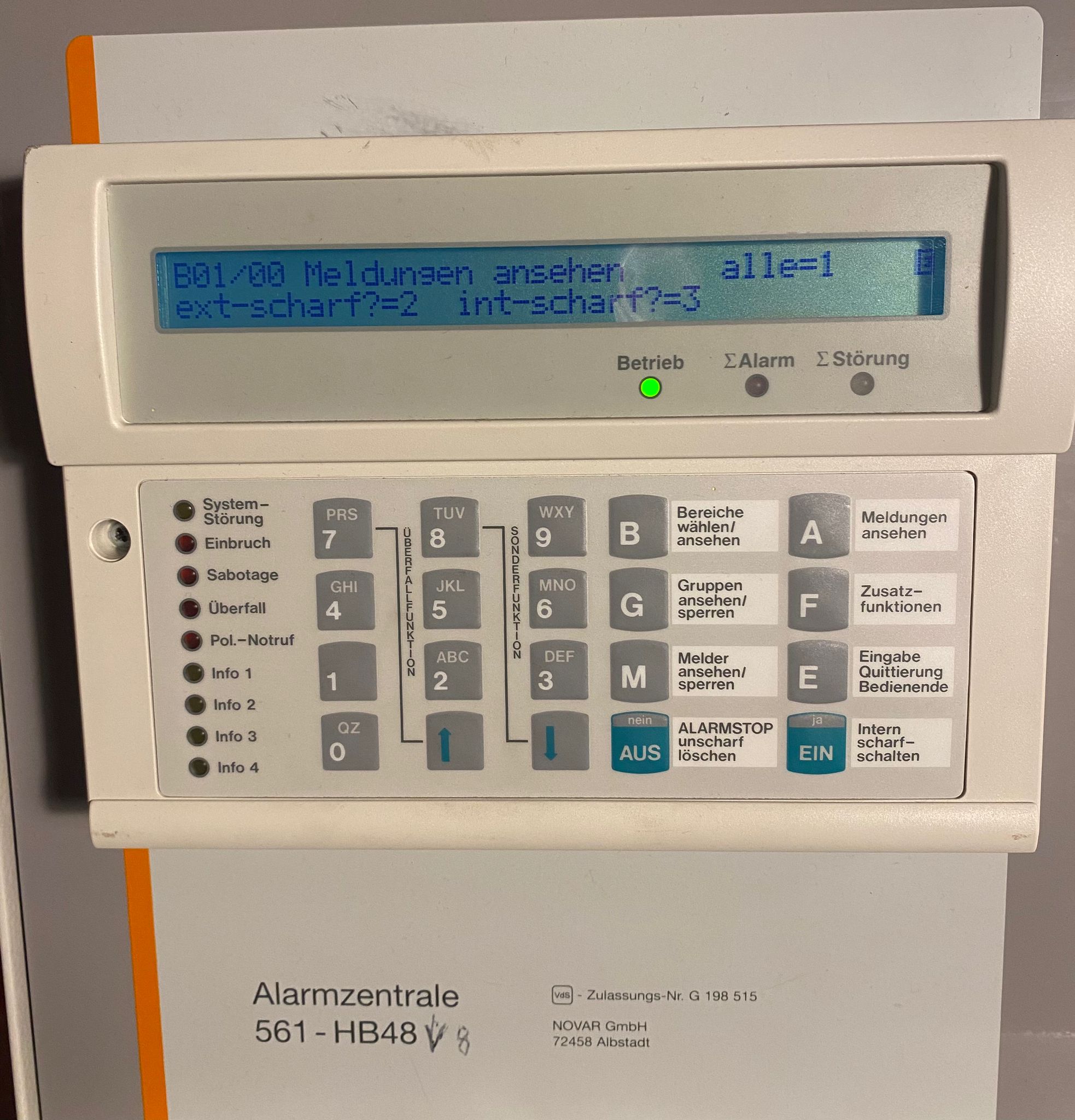 Drück mal auf "EIN", wenn du den Starus auf deinem Bild 2 wieder erreicht hast. Und bei verkabelten Magnetkontakten ist der Hersteller nicht relevant, ein Telenot-MK funktioniert auch an einer esser, ABUS oder Lupus und andersherum. Viele Grüße und weiterhin feel Erfolg Olli ------- Sorry, Bild 3 aus deinem letzten Beitrag. |