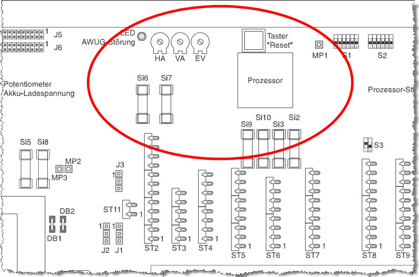 interessant ist für mich das was man auf der Skizze nicht sieht! Ich vermute links neben dem Prozessor sollte sich die Pufferbatterie für den Prozessor befinden. Ich bin mir da aber nicht ganz sicher, dafür ist es schon zu lange her als ich das letzte mal mit einer H8 zu tun hatte. Leider kann man auf deinem Bild auch nicht erkennen was auf dem Bauteil für ein Text aufgedruckt ist. Die Pufferbatterie versorgt den Prozessor auch bei kompletter Spannungslosigkeit der Zentrale weiterhin mit Energie und hält somit auch die Programmierung am leben. Wenn du sagst das deine Zentrale aus dem Jahre 2001 stammt dann dürfte die Pufferbatterie vermutlich tot sein und ich würde diese daher als erstes überprüfen. Wie auch immer, das Bauteil (gelber Kreis) links neben dem Prozessor auf deinem Bild sieht für mich nicht gesund aus (roter Kreis). Wenn es sich also um die Pufferbatterie handelt, so würde dies für mich auch das jetziges Verhalten der Zentrale selbst nach dem Austausch mit neuen Notstrom Akkus erklären. Wer nichts weiß muss alles glauben ! |