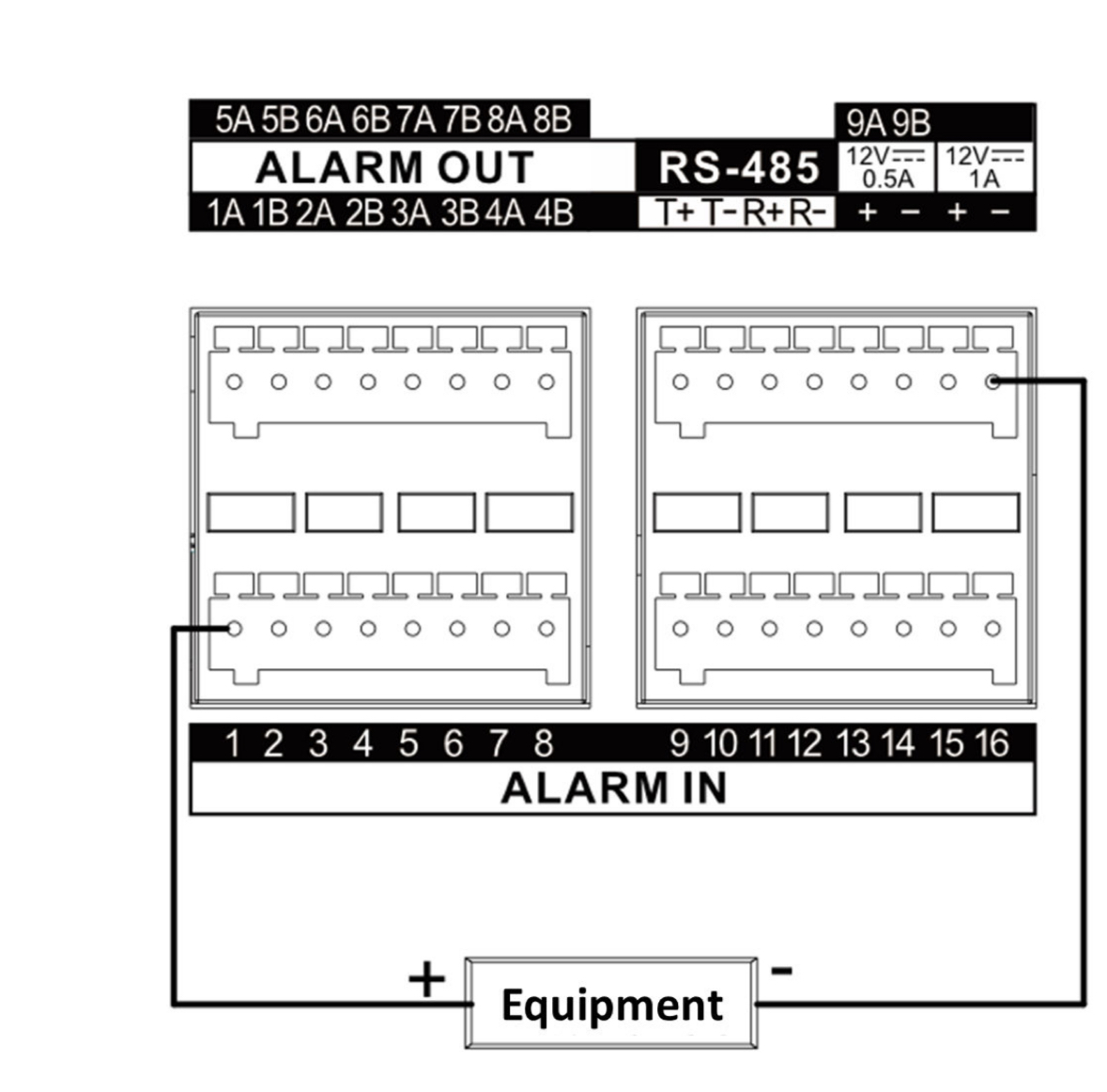 Alarm Input 1 wird gebrückt auf Alarmausgang 2, 2B geht an die Minus klemme der 12V Versorgung oben rechts. Hier noch das Bild aus der Anleitung |