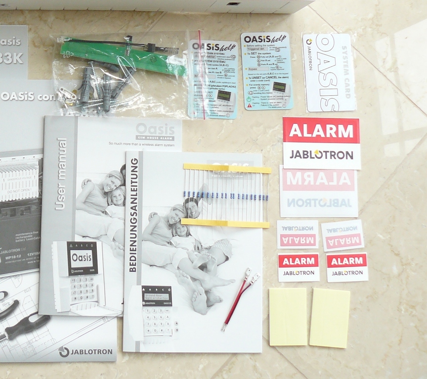 Nachdem mich das selbst auch interessiert hat und ich das eine oder andere Mal hier im Forum oder bei den Distributiren direkt nachgefragt habe möchte euch mal zeigen, was so alles mit den Komponenten mitkommt (Schrauben, Dübeln, Beschreibung, ... ) - quasi ein 'unboxing". ![]() 1x JA-83K Jablotron OASIS Hybrid Alarmzentrale 1x JA-82R Funkmodul 1x JA-82Y GSM-Kommunikationsmodul 1x NPA-12/12 Panasonic Notstrom Akku 2x JA-81E Drahtgebundenes Bedienteil 3x JA-81M Funk-Melder, weiß 9x MK 1010W Magnetkontakt drahtgebunden 4m 10x RFID Chips Transponder 2x RC-82 Jablotron Funk-Fernbedienung 1x JA-82T PC-USB-Schnittstelle Gesendet von meinem Taschenrechner |