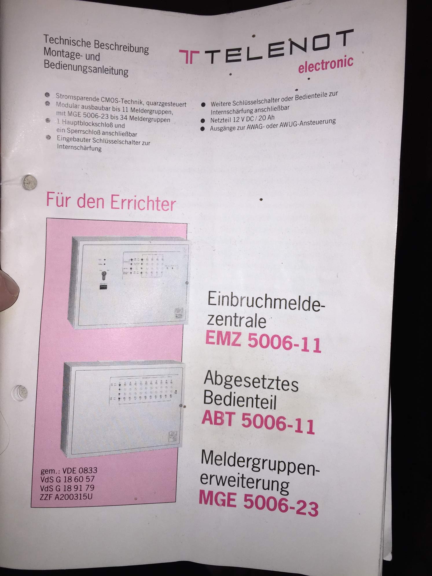 so, nun bin ich wieder zu Hause und habe mal nachgeschaut, was das für eine Anlage ist: Eine Telenot EMZ 5006-11, also ziemlich alt, aber irgendwie noch zuverlässig. Die müsste ca. 30 Jahre alt sein. @Timbaum, das ist ein "normales" Ausenschloss mit einem Spezialschlüssel mit Vertiefungen, ist eine massive Stahltür mit Glas drinnen, das Signal geht über eine aus der Tür führende Leitung. @Tim_to_wonder: Terxon MX werde ich mir anschauen, aber habe in einem Kommentar gelesen, dass man da nur mit der seriellen Schnittstelle rankommt, ist natürlich kein Problem, zeigt aber, dass die Technik vielleicht nicht mehr ganz neu ist? @Thomas, ich muss mich mal mit der alten Anlage auseinandersetzen, mal schauen, ob es sich lohnt, diese noch aufzurüsten (wahrscheinlich eher nicht). So, nun weiss ich nicht, wo ich weiterschreiben soll, um nicht OffTopic zu werden, vielleicht bei Telenot? Ich würde gerne mittelfristig die EMZ 5006-11 austauschen und die Melder behalten. In die EMZ 5006-11 gehen 100 Kabel rein, weiss gar nicht, wie man sich da zurecht finden soll, da muss ich wohl alles durchmessen.... Anbei noch einige Photos von der jetzigen Anlage. Soll ich in einem anderen Thread weitermachen, das Thema würde ja "Ersatz für eine EMZ 5006-11" heissen. (Langsam schwant mir, dass sich sowas zu einem Hobby ausweiten könnte, hatte ich eigentlich nicht so richtig vor...) Mit freundlichen Grüßen und vielen Dank für Eure Kommentare und Infos! |