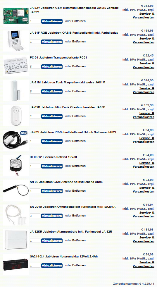 1x AN-06 Jablotron GSM Antenne gestrichen, da laut DanielJ bereits enthalten
