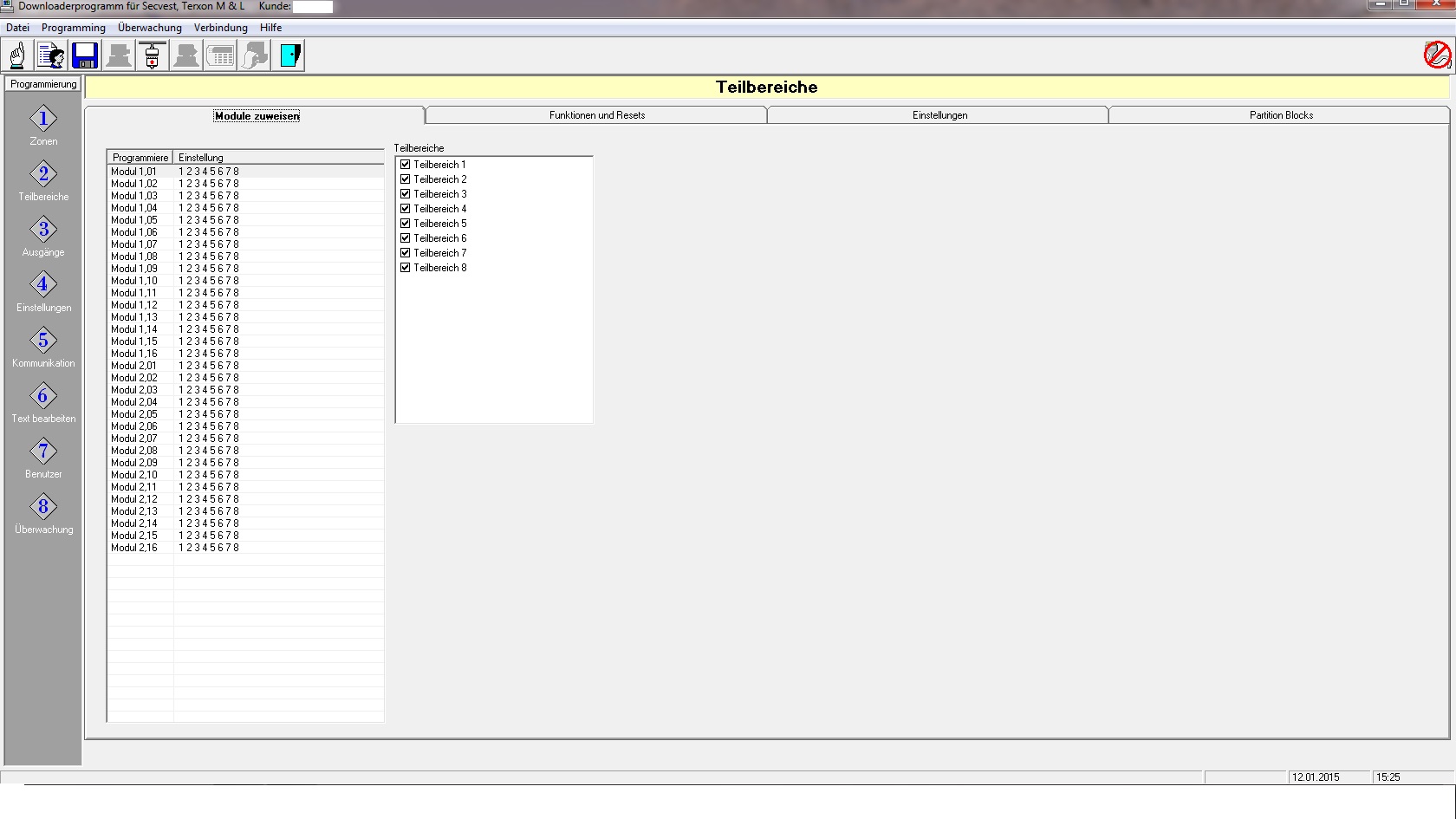 TB 1 oder 2 aktivieren? Häkchen und der jeweilige Teilbereich wird aktiviert.