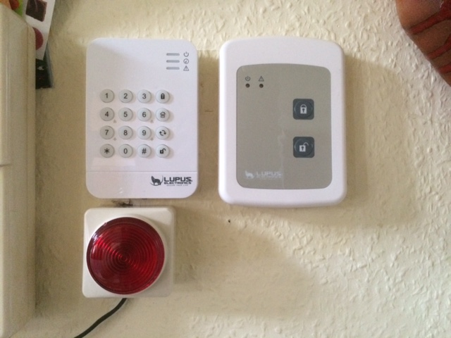 Ach so, aber das ist kein Thema. Alles sicher- die Lanpe samt Gehäuse stammt von einem bekannten Hersteller. 2 Kabel mit Stecker anschrauben und ab in die Funksteckdose. Funktioniert super und meine Leute sehen auf Abhieb, dass die Anlage scharf oder eben nicht scharf ist. Das bekommt auch jemand ohne eine elektrofachliche Qualifizierung hin. Ich hätte natürlich auch eine Stehlampe in die Funksteckdose stecken können (hahaha), aber das wäre nicht so gut gekommen. Fest steht, dass man sich halt mit der Lupusanlage, dem Zubehör und den Einstellmöglichkeiten durchaus auch behelfen kann.