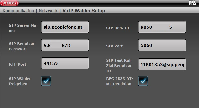 Nun die Lösung z.B. für eine Fritzbox: Kommunikation - VOIP - Einstellung. SIP Server - fritz.box SIP Benutzer ID - 620 (bitte in der Fritzbox unter Telefoniegeräte neu anlegen. Password entweder 4 oder 6 stellig, wie Setup von der Secvest.) SIP Benutzer PW - xxxx SIP Port - 5060 RTP Port - 5062 SIP Test Ruf - +49152374xxxx@fritz.box (jede Nummer möglich, egal ob Handy oder Festnetz) RFC - off Kommunikation - Komm.- Optionen - Ausgangsrufsteuerung freigeben Mit dieser Einstellung sollte dann ein Testverbindungsaufbau mit der neuen Firmware (Feb. 2016) möglich sein, denn dort gibt es neuerdings die Möglichkeit eines Testanrufs aus dem Setup. An der Fritzbox sind keine weiteren Portfreigaben oder Einstellungen nötig. Diese werden erst notwendig, wenn ich von extern die Anlage anrufen möchte. Trotzdem reicht das nicht aus! Ist ja nur für den Testanruf (echte Abus Querdenke). Netzwerk - bitte unter DNS auch die Gateway IP / Router Adresse eintragen (192.168.178.1) Unter Kontakte ist die Telefon Nr. 1+2 nicht relevant, nur für den analogen Anschluss!!! Nur die SIP Ben. ID ist für die Steuerung VOIP notwendig. Hier bitte die Rufnummer wie folgt eintragen - +49153xxxx@fritz.box Email Adresse falls benutzt wird auch. Diese muss auch freigegeben werden (Kommunikation, E-Mail)! Sprachwahlgerät muss freigegeben und konfiguriert sein, sonst geht es nicht! Daher kann man jetzt unter Ziele die SIP Ben. ID auswählen und unter Ergebnis das Ereignis selektieren. Schon macht man es richtig, funktioniert auch der Anruf im Alarmfall. Ich hoffe das hilft weiter, denn ich war zeitweise echt am verzweifeln. |