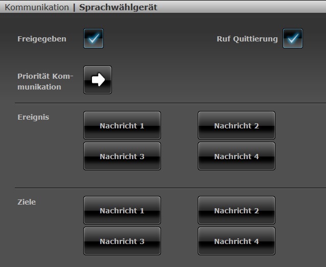 das Menü Kommunikation/Sprachwählgerät ist für die reine Telefonanbindung (PSTN). Damit kannst du dir direkte Ereignisse/Nachrichten auf dein Telefon schicken lassen. |