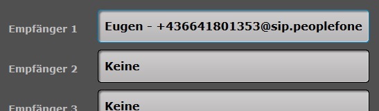 ich plage mich da schon seit Tagen etwas herum, meiner neuen Secvest Anlage beizubringen, mich im Alarmfall anzurufen. Den Thread hier http://www.alarmforum.de/Thread-Secvest-...einrichten habe ich schon aufmerksam studiert, aber leider keine Lösung für mich gefunden, aber immerhin klappen die Testanrufe jetzt endlich. Kurz die Symptomatik: - bei Alarmauslösung bekomme ich die E-Mails - die SIP-Tests (unter Tests->Sprachwahlgerät und Kommunikation->Netzwerk->VOIP Wähler Setup) lösen auch einen Anruf mit der englischen Telefonstimme aus - somit sollte VoIP eigentlich funktionieren Soweit, so gut. Aber nach Auslösen des Alarms wird einfach keine erfolgreiche Telefonverbindung aufgebaut. Anbei noch ein paar Screenshots von der Konfiguration. Was kann das noch sein? Ich wäre über jeden Tipp sehr dankbar! Vielen Dank..............Eugen |