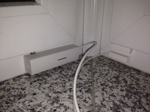 Ich hab schon mal provisorisch den Melder und einen Drahtkontakt für die Eckfenstersicherung angebracht - siehe Foto (Das Kabel wird noch gekürzt Big Grin). Derzeit geht sofort der Alarm los, wenn ich die Anlage scharf mache.......aber mal sehen, vielleicht bin ich das Problem los, wenn ich die Fragen beantwortet bekomme.