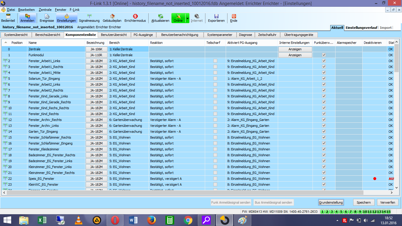 Ich habe eine Frage betreffend Einstellung Jablotron 100 über F-Link. Die Komponenten sind wie beschrieben angemeldet und zu entsprechende Meldelinien angemeldet. Die Meldelinien sind zu jeweiligen PG_Ausgang zugewiesen. Wenn ich das System/Bereiche unscharf schalte, dachte ich dass auch die Komponenten unnscharf geschaltet sind und geben keine Alarmmeldungen ab. Bei mir ist es nicht so. Was habe ich falsch eingestellt?