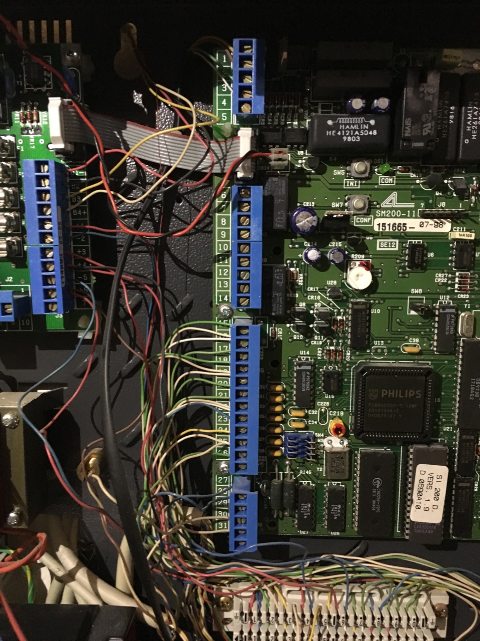 das ist die untere Steckergruppe, die Aufsteigende Leiste macht die Ausgänge der Linienerweiterungen und ganz oben ist der Ebus angeschlossen. Habe aktuell
