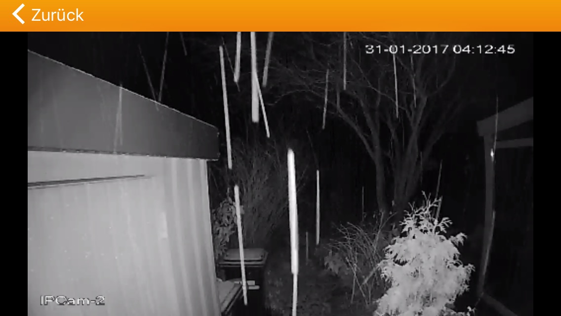 Das ist genau das Problem: Geht man mit der Empfindlichkeit zu weit herunter, so wird keine Bewegung mehr erkannt. Dreht man sie hoch, hat man nachts eine Unmenge an Aufnahmen bei Regen. Auch mit dem Grenzwert komme ich nicht weiter.