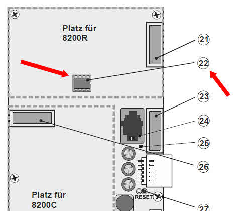 (12-06-2017 19:42)Tanar.dz schrieb: Wenn ich die Zentrale tausche, sollte es ja wieder funktionieren. Ja da gibt es eine Möglichkeit. Diese ist sogar in der Installationsanleitung beschrieben. http://www.indexa.de/w2/download/anleitu...et_anl.pdf Siehe hierzu Abschnitt 4.7 auf Seite 16 Auf der Platine ist ein Speicherchip der die Konfiguration enthält. Wenn man diesen auf ein Basismainboard der gleichen Baureihe steckt, werden die Konfigurationsdaten übernommen. Siehe hierzu das Bild im Anhang. Das Ganze im stromlosen Zustand und bei dem Flashspeicher die üblichen Vorkehrungen treffen, was statische Aufladung angeht und natürlich auch die Steckposition beachten. Hast du damals auch den Errichtercode vom Hausbauer bekommen? Der Tausch ansicht wird kein Problem darstellen, wenn du die Verkabelung 1:1 übernimmst. Du wirst aber die Anlage einmal in den Errichtermous stellen müssen. Nämlich dann, wenn du die Batterie anklemmst, sonst geht die in Sabotage und die Sirene geht los. Gruß Christian Murphys Law: Man hat niemals Zeit, es richtig zu machen, aber immer Zeit, es noch einmal zu machen. |