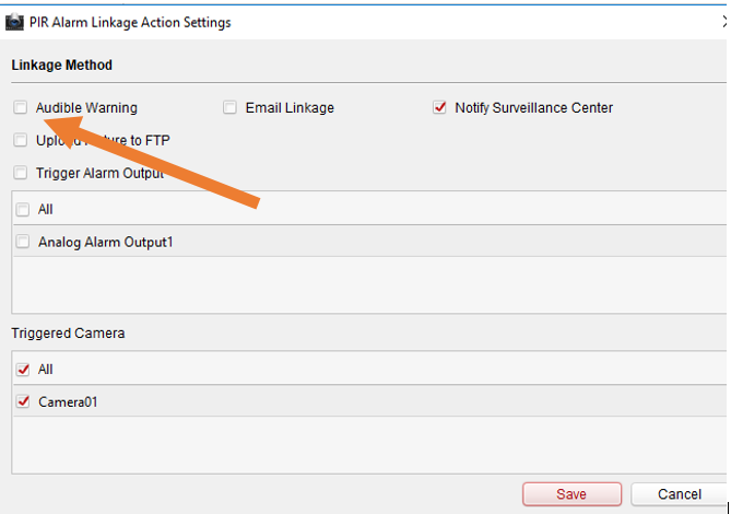 Nun für vielleicht noch jemandem der da auch Probleme hat. - iVMS-4200 (Windows) starten - Device-Management auswählen - Die entsprechende Kamera markieren und Remote Configuration anclicken - Drop down "- Event" und markiere Other Alarm - Alarm Type auswählen (zB PIR-Alarm) - Linkage Method "Settings" clicken - Audible Warning Haken entfernen - Save Siehe auch Bilder Schönen Sonntag Caro |