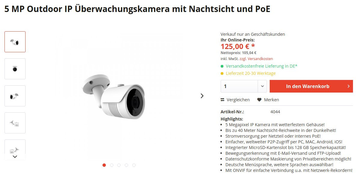 (19-12-2018 12:11)John55 schrieb: vielen Dank mal Leute, ich sehe mich mal nach einer IP Poe Cam um Insofern es sich um einen herkömmlichen Router oder auch um einen Router handelt, welcher die Internet-Provider zur Verfügung stellen, dann ein ganz klares Nein. Einfachste und kostengünstigste Variante bei nur 1 Kamera: TP-Link TL-PoE150S (Single Port Injector) Wenn du schon nach China-Krachern Ausschau hälst, dann kann ich hier eher empfehlen, als Privatkäufer zu kaufen, um so ggf. von deinem 14-tägigen Rückgaberecht Gebrauch zu machen, wenn es deine Ansprüche an Hard- und Software dann nicht erfüllt. Einbruchmeldeanlagen - Videoüberwachung - Perimeterschutz - Sicherheitsnebel