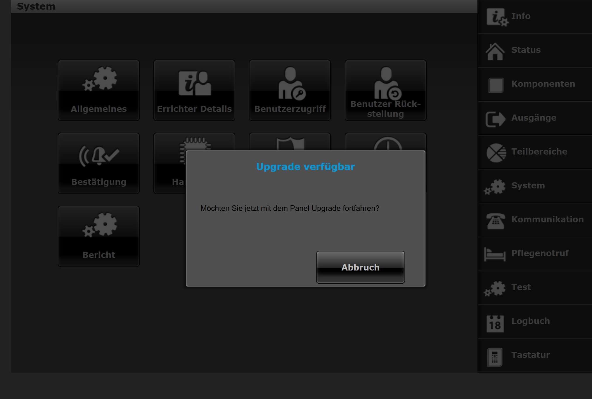 Das sieht so aus, als ob du als Benutzer und nicht als Level4 Benutzer eingeloggt bist, was notwendig ist um die Anlage über das Web Interface up zu daten.
