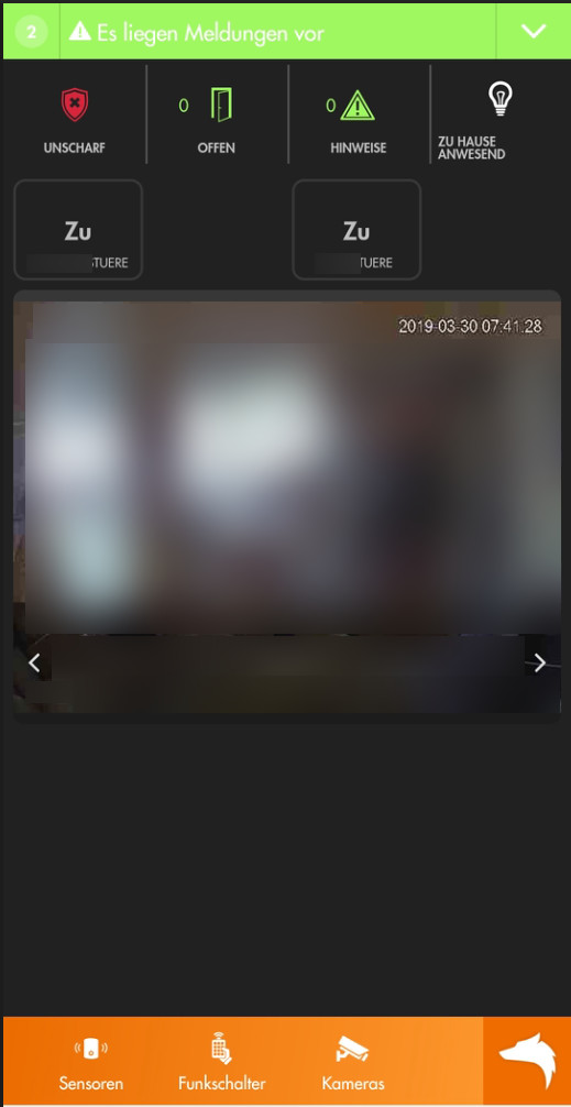 Tippst du das Bild an, öffnet sich die gerade ausgewählte Kamera mit einem größeren Bild und hier kannst du mit den orangen Pfeilen zwischen den Kameras auswählen, alle "Plätze" auch wenn dort keine Kameras aktiv/hinterlegt sind.