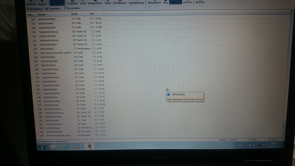 wenn es so eingestellt ist (684x 1= ein 0=aus) und 370 ist aktiviert = verdr. Sirene bei Teilscharf deaktivert. Ich hab es persönlich immer aus. Wenn es denn Sabo war, sollte das eigentlich auch als Sabo im Log deklariert sein. Dann gibt es noch den sozialen Alarm der nach 16h nicht Betätigung auch reagiert aber da wird ja auch Panikalarm ausgelöst. Das wird es sicher auch nicht sein. Mehr fällt mir da aktuell nicht ein, was so ein Verhalten auslösen könnte. Vielleich kannst mal einen Auszug reinstellen, so dass man die Ereignisse davor und danach mal sehen kann. Gruß Christian PS: Sehe grade es ist ein 82M die Dinger sind sehr empfindlich mit dem hinteren Saboschalter. Vielleicht hat sich hier auch was mit der Zeit der Melder gewölbt und dadurch den Sabo ausgelöst der dann als Einbruchalarm gewertet wurde. Hier kannst du mit den Dipschalter den Sabokontakt aber im Melder deaktivieren. Schau auch mal ob der irgendwie feucht geworden ist bzw. ob du Korrosionen feststellen kannst. Murphys Law: Man hat niemals Zeit, es richtig zu machen, aber immer Zeit, es noch einmal zu machen. |