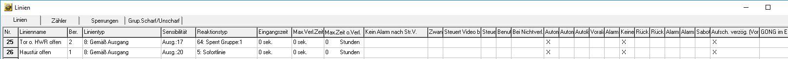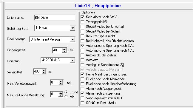 Dafür dass der Alarm schon nach 25 Sekunden losging, habe ich keine Erklärung. Hast du vielleicht noch eine andere Sofortlinie verletzt gehabt nach 25 Sekunden? Das andere Phänomen lässt sich so erklären, dass 2 Eingangszeiten gestartet werden. Erst 30 Sekunden durch die Tür, dann etwas später 40 Sekunden durch den BM. Für die Alarmauslösung ist nur die kürzere Zeit relevant. Aber warum hast du den BM überhaupt als verzögerte Linie eingerichtet? Wenn einer nicht durch die Haustür kommt, löst der BM erst nach 40 Sekunden aus?! Ich würde den BM als Sofortlinie definieren mit Haken bei Keine Meldung bei Eingangszeit. |