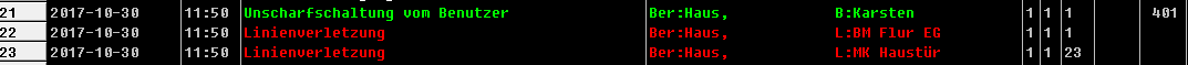 bei meiner Anlage ist der Magnetkontakt der Haustür per Funk angebunden (AMD101) und direkt dahinter ist ein Bewegungsmelder der per Draht angebunden ist. Hinter der Tür sitzt das Bedienteil INT-TSG mit dem unscharf geschaltet wird. Nun kommt es bei ca. jeder 30. Unscharfschaltung zu einem Fehlalarm, weil laut Ereignisprotokoll der BW vor dem Magnetkontakt auslöst und die Eingangszeitverzögerung dadurch nicht gestartet ist. Korrekt: Fehlerhaft: Die Sensibilität der Linie des BW habe ich schon auf 1000ms erhöht. Leider ohne Erfolg. Werde noch mal 1,5s testen. Liegt es an den unterschiedlichen Übertragungswegen oder habe ich einen anderen Fehler? |