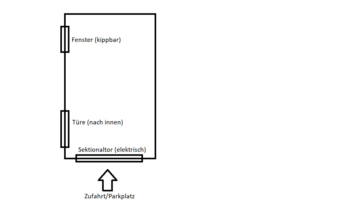 möchte mich kurz vorstellen, mein Name ist Oliver und ich komme vom Bodensee. Ich lese hier schon eine Weile mit und bin mir sicher das ihr mir weiterhelfen könnt. Absichern möchte ich eine Wohnung im 1. OG (Zweifamilienhaus) und eine Garage, bestellt habe ich ein Lupusec XT1 Starterpack. Bevor ich nun weitere Melder kaufe, möchte ich zunächst die Wohnung mit den enthaltenen Sensoren "grundabsichern" - dazu würde ich dann eine Zeichnung des Grundrisses einstellen (ohne Adresse natürlich)! ![]() Die Garage hat zusätzlich zum Tor seitlich eine Eingangstüre und ein Kippfenster (siehe Zeichnung). Geplant war eine Absicherung der Türe durch einen Magnetkontakt und zusätzlich ein Bewegungsmelder. Frage zum Bewegungsmelder, ist hier ein Dual-Melder sinnvoll (Spinnen) oder ist der mitgelieferte Standardmelder ausreichend für die Garage (keine Heizung, nur ein kleines Fenster). Wo würdet ihr am sinnvollsten den Bewegungsmelder montieren? Im Anhang eine Skizze der Garage, für Tipps wäre ich euch sehr dankbar. Oliver |