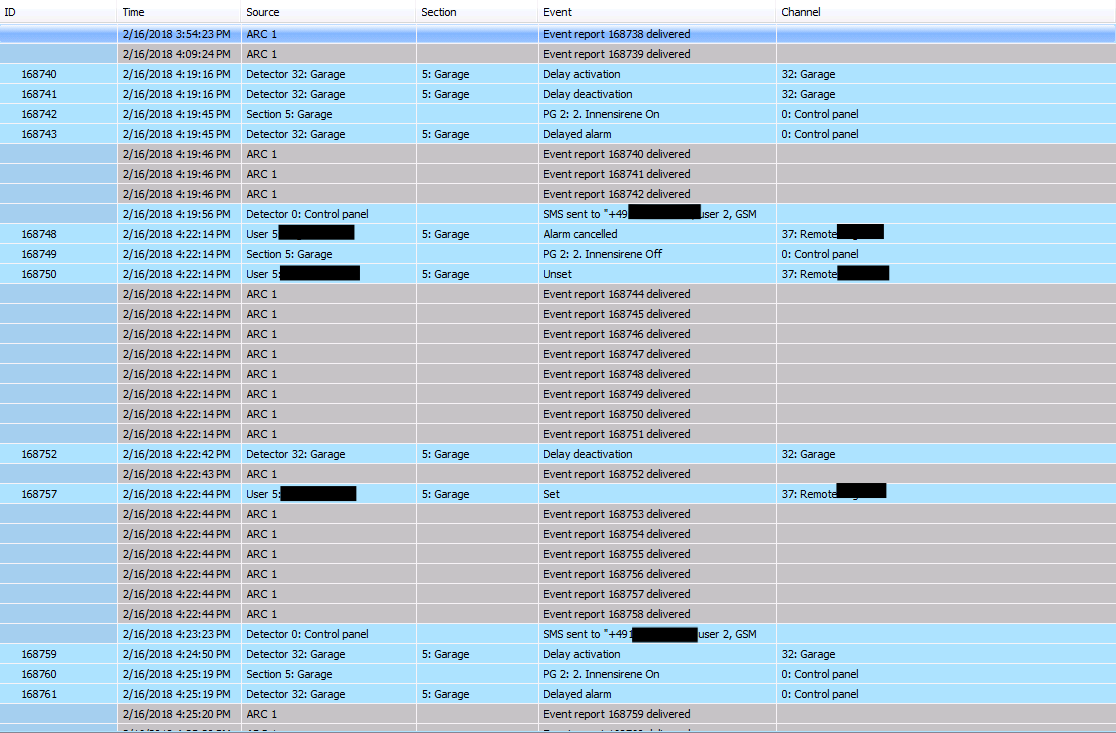 Der Alarm trat aus dem nichts auf, wurde dann gecancelt und löste dann kurze Zeit später erneut aus. Dann war die Anlage bis abends deaktiviert. Tests am Abend konnten den Alarm nicht reproduzieren. Ich hab mal einen Auszug aus dem Log beigefügt. Den Batteriestatus zeigt mir F-Link bei den 180er Komponenten leider nicht an, nur bei den 150ern. Keine Ahnung warum das so ist, hab ich mir nie Gedanken drüber gemacht, sondern ging davon aus, daß das daran liegt, daß die 180er ja eigentlich "zweckentfremdete" OASIS-Komponenten sind. Wenn ihr mir also bestätigt, daß auch für die 180er-Komponenten der Status angezeigt werden sollte, dann muß ich dem auch mal auf den Grund. Bleibt aber die Hauptfrage, wieso wird - ohne das irgendwas am Garagentor manipuliert wurde - ein Einbruchsversuch gemeldet??? |