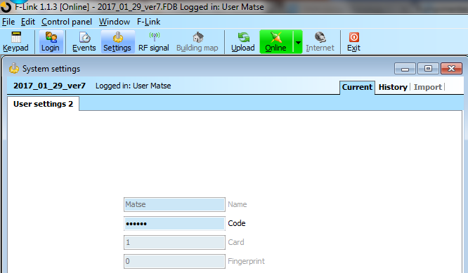 danke für die Hilfe. Wenn ich F-Link Starte und sage, dass er sich local verbinden soll, bekomme ich immer folgendes Fenster ( Wenn ich mich dann mit dem Benutzer verbinde, mit dem ich glaube mich sonst immer verbunden zu haben, sehe ich nur das User Interface ( Dies ist aber nicht der Master oder Service User - auch wenn ich der Meinung bin, dem User Admin Rechte vergeben zu haben. Ich prpbiere mich schon die ganze Zeit auf einer alten Sicherung offline anzumelden, damit ich nicht immer den Alarm durch zu viele Fehlversuche auslöse. |