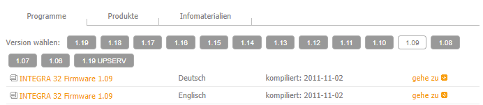 Die zuletzt veröffentlichte Firmware für die INTEGRA 32 ist v1.18 vom 20.06.2018.