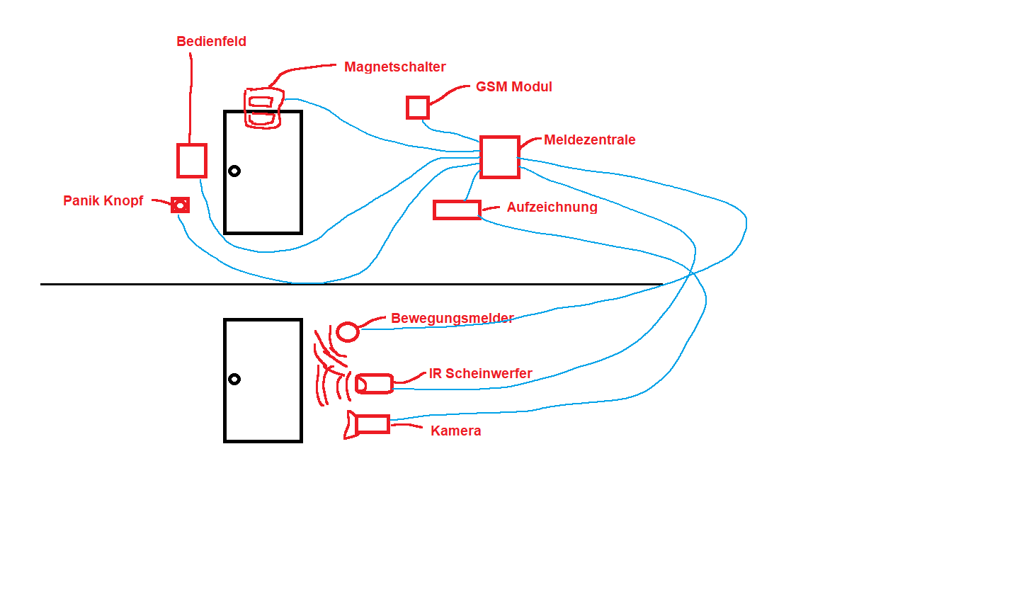![]() Ja, ist Machbar. Aber da sind noch einige Fragen zu klären: Das untere Bild, ist das Außen oder Innen? Kann der Panik Knopf auch Bestandteil des Bedienfeldes sein? Was soll die Kamera denn können? Entfernung zum Objekt? Identifizierbarkeit von Personen oder was? Ist geplant die Anlage später noch zu erweitern, oder bleibt das so minimalistisch? Wlan oder Internet braucht man dazu auch nicht unbedingt. . In fast allen Fällen sitzt der Fehler vor dem Monitor. ![]() Gruß Thomas Für die Richtigkeit, meiner Angaben, gebe ich keine Garantie. |