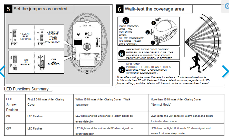 Ich kenne weder den Melder noch die Beschreibung hierzu, allerdings sollte es mit LED´s, die im Rahmen des Gehtest aktiv sind, so sein, dass diese nach der Anlernphase bei einer Bewegungserfassung keine Funktion haben, da man (= der Einbrecher bei seinen Vorbereitungen) sonst den Erfassungsbereich des jeweiligen Melders austesten kann und dieses Wissen bei dem anschließenden Einbruch nutzt.