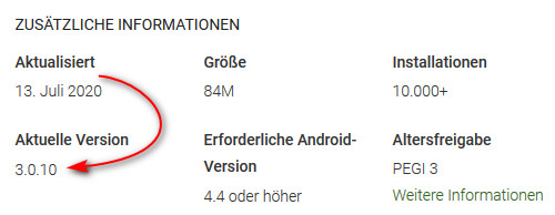 Bei mir ist es ist die App V: 3.0.11. Bei einem Samsung S9 (Android)