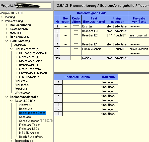 Da hat das eine mit dem anderen nichts zu tun. Den Code für die App musst du unter 2.5.1.3 eingeben. Hier kann man z.B. für die App einen Code für eine Ebene und einen anderen Code für eine andere Ebene eingeben etc. Das kann man auch für jedes Bedienteil oder jeden Benutzer einzeln einstellen. Wird z.B. verwendet Putzfrau darf Bereich XY nur Scharf schalten, nicht unscharf oder Benutzer XY darf nur scharf/ unscharf schalten, jedoch kein Menü aufrufen.....